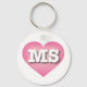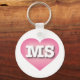Ce porte - clé présente un coeur rose calme, cool et recueilli avec un centre blanchi contenant les lettres coques supérieures MS, gras, blanc, l'abréviation officielle pour Mississippi, l'état de la magnolia.