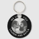 Votre photo préférée entourée d'un message personnalisé et de vos noms sur un porte - clé personnalisé.