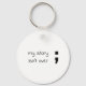 Un simple porte - clé blanc qui dit "mon histoire n'est pas terminée" avec un point-virgule.
