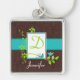 Ce porte - clé personnalisable FAUX monogrammé bleu turquoise, blanc et marron a une paire d'oiseaux bleus assis sur une branche verte et feuillue. Il correspond au faire-part de mariage ci-dessous, et ferait un bon souvenir de votre mariage ou comme un cadeau à vos servantes d'honneur, ou d'autres personnes spéciales qui ont aidé avec votre grand jour. La taille plus petite ferait aussi un porte-monnaie élégant ou un charme de téléphone portable! Vous pouvez modifier le texte à votre convenance, et vous pouvez modifier la couleur, la taille et le type de police utilisés en cliquant sur le bouton orange "personnaliser". Si vous avez besoin d'aide, envoyez un courriel à niteowlstudio@gmail.com.