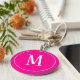 Un porte - clé avec un monogramme blanc sur un arrière - plan rose chaud. Customisez le porte - clé avec vos initiales ou initiales, couleurs, entre autres options.