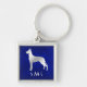 Une silhouette argentée d'un Grand Danois est placée contre un arrière - plan bleu vif sur ce porte - clé séduisant. Sous l'image du chien se trouve votre monogramme de trois lettres. Beau, et parfait pour quiconque aime un Grand Danois.
