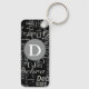 Belle et bon marché porte-clés personnalisées. Pour créer, il suffit d'ajouter votre nom et votre lettre initiale aux modèles pour voir un design motif élégant imprimé en lettres grises sur toute la surface noire