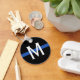 Ce porte - clé de ligne bleue mince de police a une bande bleue horizontale sur un arrière - plan noir et un monogramme initial en blanc pour vous de personnaliser.