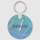 Mint Green Blue Faux Parties scintillant Étincelles Monogram Porte - clé fait une idée de cadeau pour vos amis ou collègues à toute occasion, y compris les mariages, les fêtes d'anniversaire et plus encore! CLIQUEZ SUR PERSONNALISER L'OPTION MODÈLE ET ENTREZ INITIAL. Conçu avec un pastel abstrait tendance a été et bleu ombre arrière - plan parties scintillant et scintille avec grand script blanc lettre monogramme design et nom sur le centre avant de porte - clé bouton rond.