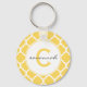 Motif en quatrefoil jaune et blanc avec monogramme.