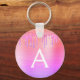 Porte-clés Monogramme en acier inoxydable pailleté rose viole