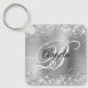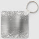 Elégante parties scintillant en argent avec étincelles contre une fausse image graphique en métal brossé gris. On peut customiser le monogramme de calligraphie fantaisie noir et blanc au centre. Tous les éléments brillants et brillants de ce design girly moderne sont des graphismes numériques. Une précieuse fête de porte - clé monogrammée favorise sa fête d'anniversaire spéciale.