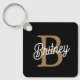 Porte-clés Monogramme moderne élégant Nom Black Gold Script