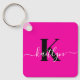 Ce porte - clé rose chaud simple et élégant avec votre prénom dans une police de script tendance en blanc et votre première initiale dans une police casquette moderne en noir est parfait pour vos clés. Design, moderne et très classique.
