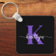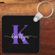 Ce porte - clé noir moderne avec votre prénom dans une police de script tendance en blanc et votre première initiale dans une police de casquette moderne en violet est parfait pour vos clés. C'est design, tendance et pourtant très classique.