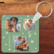 Monogram Name 3 Photo Collage Porte - clé moderne tendance présente un montage photo de trois de vos photos préférées avec votre nom personnalisé et monogramme en élégant script blanc sur un arrière - plan vert. Personnalisez en modifiant le texte dans les zones de texte fournies. Parfait pour l'anniversaire, Noël, Fête des Mères, Fête des pères, soeur, cousins, meilleurs amis et plus encore. CONSEIL PHOTO : centrez vos photos avant de les télécharger sur Zazzle. Conçu par ©Evco Studio www.zazzle.com/store/evcostudio