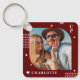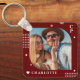 Monogram Name Photo Trendy Simple Modern Porte - clé est doté d'une de vos photos préférées avec votre nom personnalisé et monogramme en élégant script blanc sur un arrière - plan bordeaux. Personnalisez en modifiant le texte dans les zones de texte fournies. Parfait pour l'anniversaire, Noël, Fête des Mères, Fête des pères, soeur, cousins, meilleurs amis et plus encore. CONSEIL PHOTO : centre votre photo avant de la télécharger sur Zazzle. Conçu par ©Evco Studio www.zazzle.com/store/evcostudio
