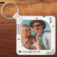 Monogram Name Photo Trendy Simple Modern Porte - clé est doté d'une de vos photos préférées avec votre nom personnalisé et monogramme en élégant script noir. Personnalisez en modifiant le texte dans les zones de texte fournies. Parfait pour l'anniversaire, Noël, Fête des Mères, Fête des pères, soeur, cousins, meilleurs amis et plus encore. CONSEIL PHOTO : centre votre photo avant de la télécharger sur Zazzle. Conçu par ©Evco Studio www.zazzle.com/store/evcostudio