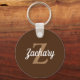 Ce porte - clé personnalisé est doté d'un monogramme bronzé et d'un nom de script rétro blanc sur un arrière - plan brun.