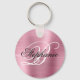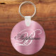 Image d'art numérique d'un film en métal brossé rose pâle. On peut customiser au centre le monogramme de calligraphie classique fantaisie noir et blanc. Actuellement, les deux styles de police sont flamands, mais vous pouvez changer le nom en Great Vibes ou un autre style de script féminin. Un précieux cercle monogrammé forme porte - clé fête favorise pour sa fête d'anniversaire spéciale.