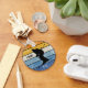Ce porte - clé unique dispose d'un skieur de neige en silhouette noire placé sur un arc-en-ciel de style rétro arrière - plan de rayures en détresse. L'image est placée hors du centre, avec votre monogramme à trois lettres sur le côté. Le dos est également noir, avec deux champs pour votre texte personnalisé.