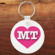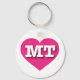 Cet anneau clé est doté d'un coeur rose chaud vibrant contenant les lettres coques en haut, blanc et gras MT, l'abréviation officielle pour Montana, l'état trésor.