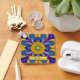 Un design en mosaïque jaune et bleu ensoleillé avec des accents de vert et de violet, et du texte personnalisable pour un nom ou un mot sur le devant et un message plus long sur le côté inverse. Ce joli motif marie le style de mosaïque intemporel de l'époque romaine à une palette provençale.
