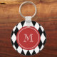 Porte-clés Motif Arlequin blanc noir, Monogramme rouge