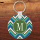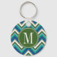 Porte-clés Motif Chevron vert et Turquoise avec Monogram