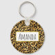 Une porte - clé avec une motif élégante. Des taches de léopard noir exotique sur un arrière - plan d'or. Style sauvage mais élégant. Un cadre rectangle de couleur blanche avec une fausse feuille d'or borde le dessus avec votre texte personnalisé à l'intérieur.