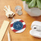Un motif simple, moderne, rouge et blanc rayures avec votre initiale dans une police moderne, sur un étiquette de cercle bleu marine, preppy, nautique, bannière, cadre avec une bordure en ligne blanche pointillée. GraphicsByMimi© motif tendance, élégant, mod, gras, vous pouvez personnaliser avec votre monogramme pour elle. Utilisez le champ modèle pour ajouter votre monogramme initial ou lettre ou sélectionnez "customiser" pour plus d'options de modification comme ajouter votre nom, texte ou photo pour créer votre propre design personnalisé unique, personnalisé et unique. Autres couleurs disponibles.