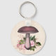 Joli look vintage design porte - clé avec des champignons teinté rose avec des fleurs roses et des feuilles verts luxuriants sur un arrière - plan rayé vintage