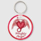 Naughty Angel... Ce coeur a des ailes d'ange rose moelleuses, avec halo et queue de diable fourrée. La couleur est une teinte rose rose foncé.Texte dit Naughty Angel. Cadeaux mignons et sadiques pour elle.