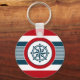 Design nautique avec décoration de boussole en forme ronde sur bleu, rouge et blanc rayé arrière - plan