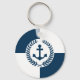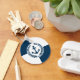 Nautical themed design with anchor and laurel wreath decoration over blue and white geometric background