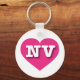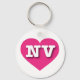 Ce porte - clé est doté d'un coeur rose chaud et vibrant contenant les lettres coques en haut, blanc et audacieuses NV, l'abréviation officielle du Nevada, l'état argenté.