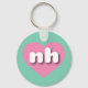 Ce porte - clé est doté d'un coeur rose vif contenant les lettres coques nh, blanches et arrondies, une abréviation ludique pour le New Hampshire, l'état granitique.