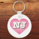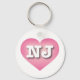 Ce porte - clé est doté d'un coeur rose avec un centre lavé blanc contenant les lettres coques supérieures NJ, gras, l'abréviation officielle du New Jersey, l'état du jardin.