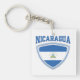 Le drapeau national du Nicaragua est infusé dans une forme de bouclier qui a des contours bleus/blancs autour du drapeau. Le nom du pays est ajouté au-dessus de l'image.