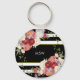Porte-clés Noir Blanc rayé Peonies & Or Personnalisé