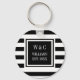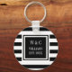 Porte - clé monogramme élégant et tendance avec ses initiales personnalisées, avec un motif rayé noir et blanc avec ses initiales et son nom de famille, avec votre date de naissance définie dans un carré aux frontières noires avec un texte blanc classique. Conçu par Thisisnotme©