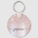 Porte-clés personnalisé avec monogramme à paillettes métallisées Rose Gold Glamour. Ces créations présentent votre prénom dans une jolie écriture manuscrite avec une typographie à queue en arabesque sur une fausse feuille métallisée rose gold avec une bordure pailletée glamour. Ceux-ci sont faciles à personnaliser. Cadeau élégant et féminin pour une pendaison de crémaillère, ainsi que pour un anniversaire, la fête des mères, un mariage, un enterrement de vie de jeune fille, une fête d'anniversaire pour les 16 ans, une baby shower, pour une fête de fin d'études et c'est pour la fille qui aime les choses uniques et élégantes avec des paillettes.