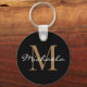 Créez votre propre porte - clé rond noir personnalisé avec votre nom de script manuscrit glam personnalisé et monogramme.