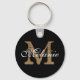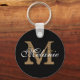 Créez votre propre porte - clé rond noir personnalisé avec votre joli nom de script de calligraphie et monogramme personnalisé.