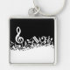 Porte-clés Notes musicales brouillées blanches sur le noir
