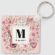 Porte-clés Notes musicales et fleurs Style rétro Monogramme