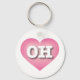 Ce porte - clé présente un coeur rose collé, calme et cool, avec un centre blanchi contenant les lettres coques supérieures blanches en gras OH, l'abréviation officielle de l'Ohio, l'état du saumon rouge.