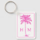 Ce porte - clé moderne d'inspiration côtière dispose d'un mignon palmier rose sur blanc avec un monogramme que vous pouvez personnaliser avec votre choix d'initiales sur l'avant et les coordonnées sur le dos.