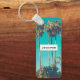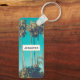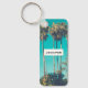 Porte - clé personnalisé avec une belle photo. De grands palmiers avec de longues troncs maigres devant un beau ciel vert. Jeu de couleurs rétro. Détente et détente.