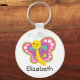 Personnalisez avec votre nom sur ce porte - clé imprimé avec l'image d'un papillon coloré aux ailes pointillées de pois rose et un visage souriant jaune vif. Un endroit amusant pour garder vos clés ensemble et facile à trouver.