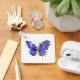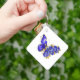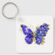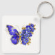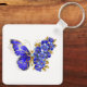 Bijoux, bleu, saphir, papillon aux fleurs pétillantes avec aile décorée de bleu, fleurs précieuses avec feuilles d'or sur arrière - plan blanc.