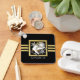 Le design comprend une paire de patins à glace sur une crête de flocon de neige avec un arrière - plan noir et faux or. Cet élégant design de sports d'hiver sert de porte - clé moderne chic et unique avec un texte personnalisé.