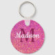 Pink Gold Parties scintillant Chic Monogramme Nom Porte - clé personnalisé Conçu avec joli rose et or faux parties scintillant arrière - plan et rose foncé monogramme initial sur le centre avec nom en calligraphie blanche écriture script. Fabrique une idée cadeau pour quelqu'un qui aime le rose et le glamour. CLIQUEZ SUR L'OPTION PERSONNALISER LE MODÈLE ET ENTREZ MONOGRAM ET NOM