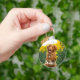 Keychain with a dog name monogram in a cute script font paired with your personalized photo on the front. The back has a pattern featuring digitally hand-drawn dog constellations paired with ditsy stars on a light blue background. Check out our store for more matching items from this collection.